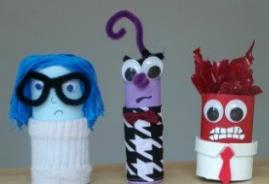 情緒朋友:準備剪刀、彩色筆、皺紋紙、膠水、廁紙筒、顏色紙、手工眼睛、毛冷線等。做法請參考手工圖。
