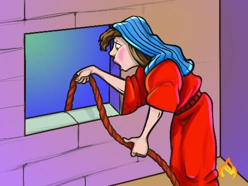 這兩個探子答應她,說,如果她不出賣他們的話,就不會讓她和家人受到任何傷害。喇合的房子蓋在城牆上,她從窗戶垂下一條紅色繩子讓兩個探子逃走,並告訴探子要在山上躲藏三天,直到搜索隊停止找尋他們為止,才好上路回去。探子在離去前告訴喇合說:「你要從窗戶上縋下一根紅繩子,讓我們的人可以識別,否則我們無法保證你的安全。同時你所有的親戚、或者其他親屬必須集合在你家中。你若照著我們的話做,在屋裡的人就不會受到傷害。」探子會不會遵守他們的諾言?你認為喇合會不會召集她的家人來呢?(一起討論)