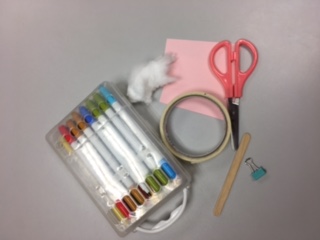 材料:顏色筆、膠紙、手工紙、棉花、