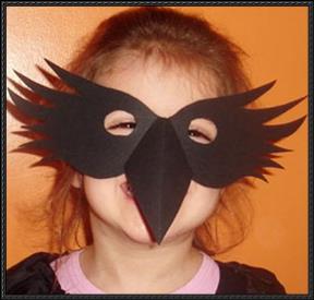 手工一:烏鴉面具:請預備黑色卡紙、剪刀、橡皮筋及膠水。