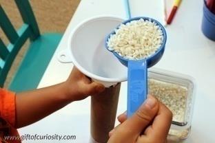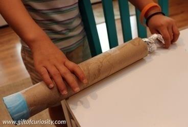 下雨發聲器:請預備顏色紙、剪刀、膠紙、錫紙、廁紙筒、兩件粗度不一的圓柱體(如枱腳、長木匙等)、米及筆。做法參考手工圖。