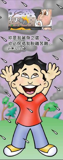 經文答案:祢是我藏身之處,祢必保祐我脱離苦難。 (詩篇32:7 )