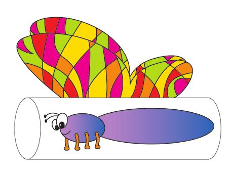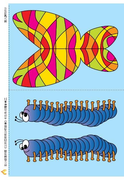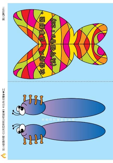 將附件1、2 以雙面影印給每位學生。指導學生沿虛線將蝴蝶和翅膀剪下,把翅膀折起來,用膠帶粘在蝴蝶身上。把兩片卷在一起,翅膀在裡面,露出毛毛蟲。把身體朝相反的方向轉動,就可以看到蝴蝶了。上下移動蝴蝶,看它的翅膀扇動。